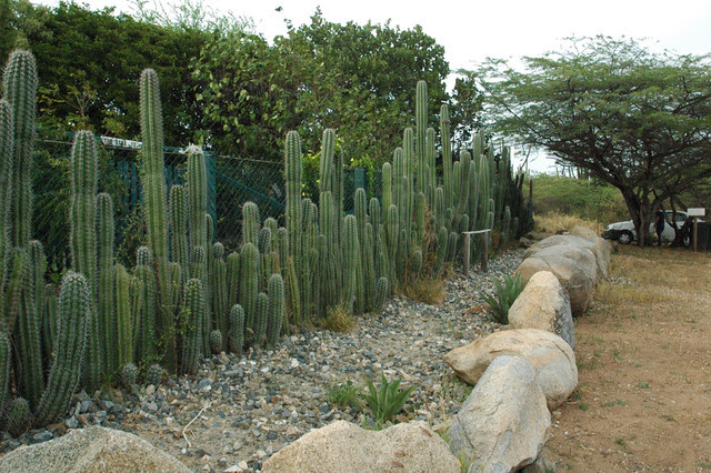 And what's with this guy. He has a chain link fence, a hedge of cactus, which for me, that alone would stop anyone or anything from getting through, and then a line of rocks, I guess just in case you thought you could drive your car through the cactus and the chain link. He also has a sign on his gate stating that the property is protected by security alarms. Just what the heck is he hiding in there?
